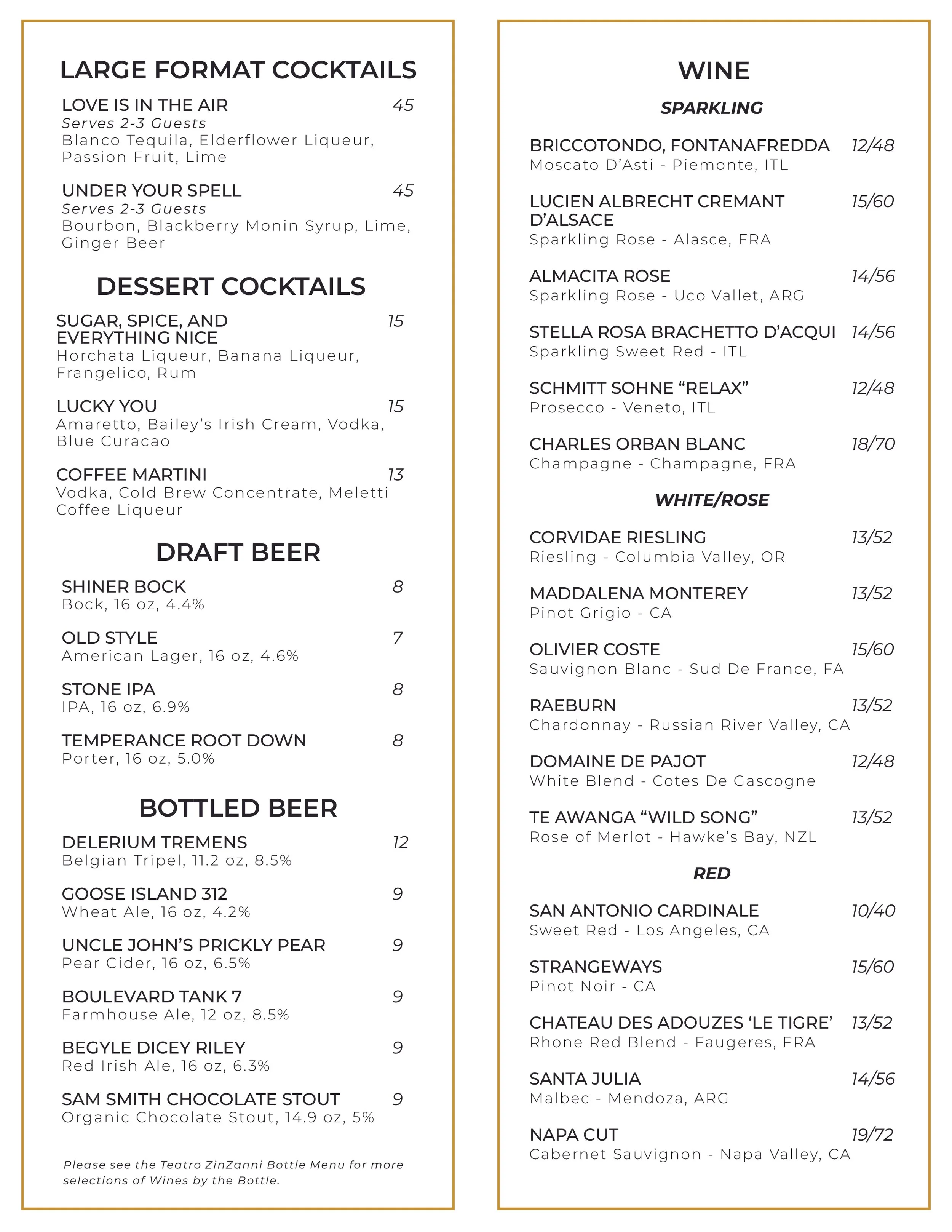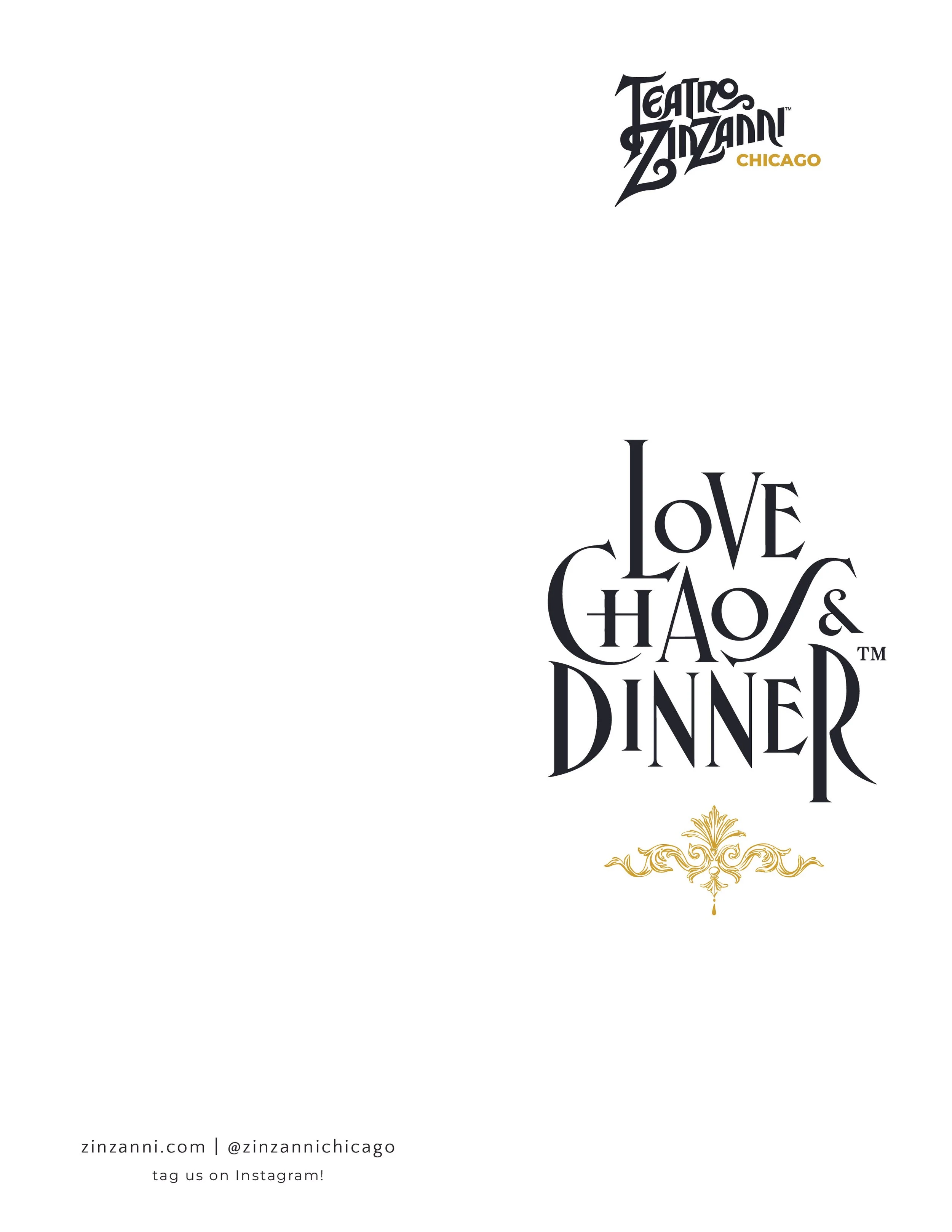 I had the privilege of designing the Dinner, Brunch, Wine, and Special Event Menus for Teatro ZinZanni’s “Love Chaos Dinner,” a captivating experience from September 2023 to May 2024. Nestled in the heart of the Chicago Loop, Teatro ZinZanni is a blend of cirque, comedy, live music, unique cocktails, and a four-course meal.